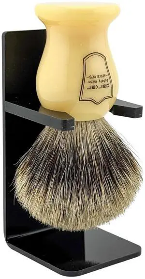 Parker 3-Band Pure Badger Bristle Shaving Brush Faux Ivory Handle, Classic Wet Shave Brush for Lathering Shaving Soaps & Creams with Bladed Razors