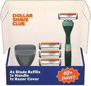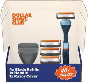 Dollar Shave Club | Travel Shave Set | 4 Extra Close Refill Cartridges, 1 Handle (Blue), 1 Razor Cover