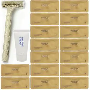 Disposable Shave Kit for Men &Women - 50 Pcs Wheat Straw Razors and Cream Bulk, Individually Wrapped Portable Toiletries Amenities for Hotel, Airbnb, Homeless, Shelter, Charity, Camping and Travel