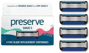 Preserve Shave 5 Razor Blades Refills - 5 Blade Razors for Men & Women - Ceramic Coated Shavers for Comfort with Aloe-Cocoa Butter Strip - Reusable Shaving Refill - 4 Pack