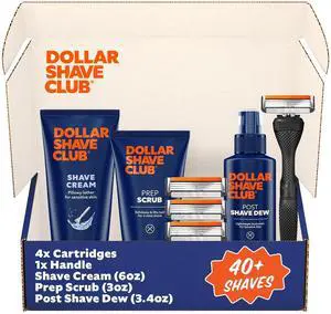 Dollar Shave Club | Ultimate Set | 4 Swift Rinse Refill Cartridges, 1 Handle, 1 Prep Scrub 3 ounce, 1 Shave Cream 6 ounce, 1 Post Shave Dew 3.4 ounce