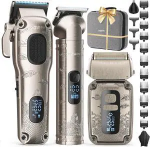 Hair Clipper & Trimmer Set for Men Professional, Waterproof Electric Razor Foil Shaver for Men Face Beard, Cordless for Hair Cutting, 4-Speed Setting, LED Battery Display, Barber or Home Use (Silver)