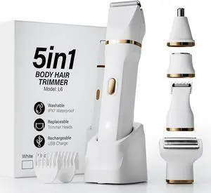 Electric Razors for Women, Valentines Day Gifts 5-in-1 Wet/Dry Bikini Trimmer with USB Charge Dock, Deluxe Facial Hair Removal, Wet/Dry Body Shaver for Nose Eyebrows Beard Underarm Leg Arm (White)