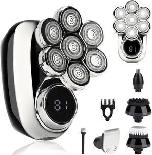 Electric Shavers for Men - 5 in 1 Bald Head Shavers for Men, 5D Floating Cordless USB Rechargeable Rotary Razor Multifunctional Grooming Kit Beard Trimmer Waterproof Wet and Dry with LED Display