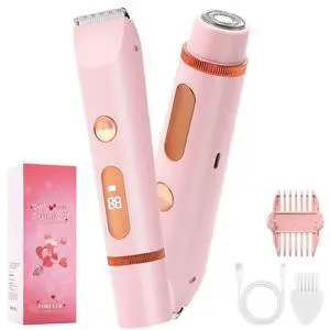 2 in 1 Women Electric Shaver Dual Head Bikini Trimmer for Women IPX7 Waterproof Wet & Dry Use Body Hair Trimmer and Facial Hair Remover for Bikini Underarm Leg Arm Body Face
