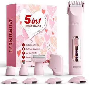 Bikini Trimmer for Women, 2 in 1 Dermave Bikini Shaver with LED Display, Electric Razors for Women, IPX7 Waterproof Wet Dry Use Body Hair Trimmer for Ladies Pubic, Legs, Face, Underarms (Pink)- Brand: REMINGTON