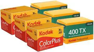 3x Kodak ColorPlus 200 Color Negative Film, 36 Exp with 3x Professional 400TX Tri-X 400 Black & White Negative Film - 24 Exp