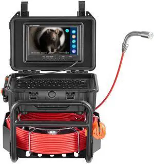 Sewer Camera, 98 ft/30m, Self-Leveling Drain Camera with 512Hz Transmitter, Distance Counter, 9" Screen 1080P HD Snake Plumbing Camera with Light-12 LED & 32GB Card for Duct Pipe