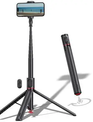 Kinwald Selfie Stick Tripod for iPhone & Android, Portable Phone Tripod Stand with Bluetooth Remote, One-Click Open, Compact & Lightweight, All-in-1 for Vlog/Travel/Photography (Black)