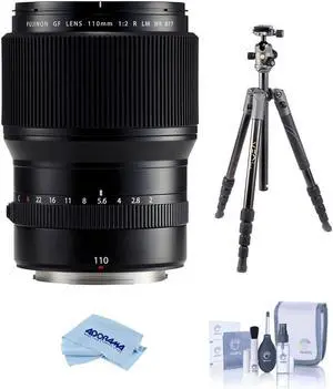 Fujifilm GF 110mm f/2 R LM WR Lens, Bundle with Vanguard VEO 3 GO 235AB 23mm 5-Section Aluminum Travel Tripod with T-50 Ball Head, ProOptic Cleaning Kit, Cleaning Cloth
