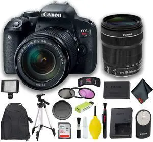 Canon EOS Rebel T7i DSLR Camera with 18-55mm Lens + 64GB Memory Card + Mega Accessory Kit + 2 Year Accidental Warranty