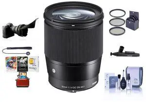 Sigma 16mm f/1.4 DC DN Contemporary Lens for Sony E, Bundle with ProOptic 67mm Filters, Cleaning Kit, Cap Tether, Flex Lens Shade, PC Software Kit