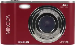 Minolta MND20-R MND20 16x Digital Zoom 44 MP/2.7K Ultra HD Digital Camera (Red)