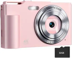 Digital Camera, FHD 4K Digital Point and Shoot Camera with 16X Zoom Anti Shake, 48MP Compact Small Camera with 32GB Card for Boys Girls Kids Shell Pink
