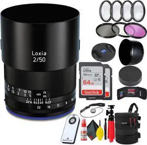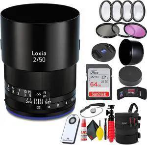 Zeiss Loxia Planar T* 50mm f/2 Lens for Sony E Mount + 64GB SD Card Bundle