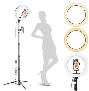 12" LED Ring Light Stand and Phone Holder - Selfie Light Tripod w/Adjustable Height and Lighting Modes for TikTok, YouTube, Zoom, Video Recording, Computer, Makeup & Photography