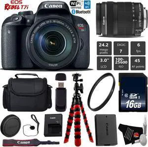 Canon EOS Rebel T7i DSLR Camera with 18-135mm IS STM Lens + Tripod + UV FLD CPL Filter Kit + Wide Angle & Telephoto Lens + Camera Case + Card Reader - Intl Model