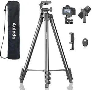 • Features: Tripod for All Cameras and Phones: with 1/4" quick release plates compatible with all Dslr, Camera, Camcorder. Canon eos rebel T5i T5 T6 T7 5D 6D R5 M50, Nikon D3200 D3400 d3500 D5200 D5600 D7500 Z50 etc. Also support Projector, Phones, Ring Light, Spotting Scopes, binoculars. equipped a stable smooth