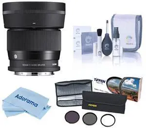 Sigma 56mm f/1.4 DC DN Contemporary Lens for L Mount, Bundle with 55mm Essential Filter Kit, Cleaning Kit and Cleaning Cloth