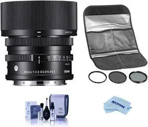Sigma 45mm f/2.8 DG DN Contemporary Lens for L Mount Bundle with Hoya 55mm Digital Filter Kit II, Cleaning Kit, Cloth