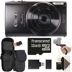 Canon PowerShot ELPH 360 HS A Digital Camera (Black) with Case, 32GB MicroSD, Card Reader, Tripod, Cleaning Kit
