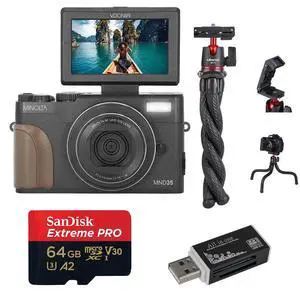 Minolta MNB5Z 56MP 5K Ultra HD 2.8" LCD Screen Digital Camera, White, Bundle with Shoulder Bag, 64GB Memory Card, Tripod, Cleaning Kit, PC Software Kit