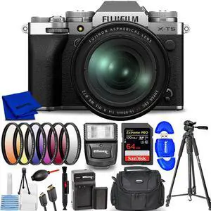 FUJIFILM X-T5 Mirrorless Camera with 16-80mm Lens Silver - 14PC Accessory Bundle