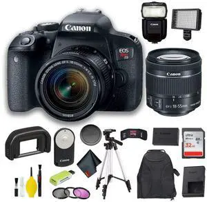 Canon EOS Rebel T7i DSLR Camera with 18-55mm Lens + 32GB Memory + Flash Kit