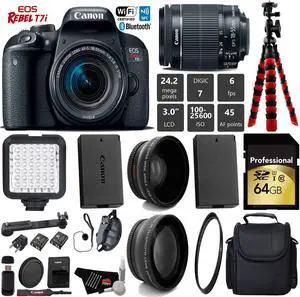 Canon EOS Rebel T7i DSLR Camera with 18-55mm IS STM Lens + LED + UV FLD CPL Filter Kit + Wide Angle & Telephoto Lens + Camera Case + Tripod + Card Reader - Intl Model