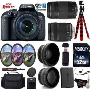 Canon EOS Rebel T7i DSLR Camera with 18-55mm IS STM Lens + UV FLD CPL Filter Kit + 4 PC Macro Kit + Wide Angle & Telephoto Lens + Camera Case + Tripod + Card Reader - Intl Model