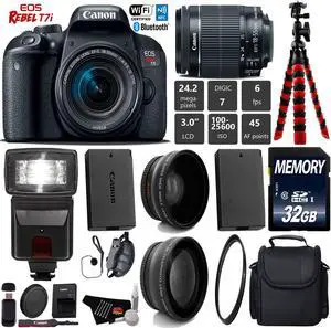 Canon EOS Rebel T7i DSLR Camera with 18-55mm IS STM Lens + Tripod + Flash + UV FLD CPL Filter Kit + Wide Angle & Telephoto Lens + Camera Case + Card Reader - Intl Model