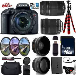 Canon EOS Rebel T7i DSLR Camera with 18-135mm IS STM Lens & 75-300mm III Lens + Tripod + UV FLD CPL Filter Kit + Wide Angle & Telephoto Lens + Camera Case + Card Reader - Intl Model