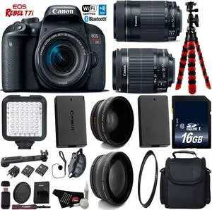 Canon EOS Rebel T7i DSLR Camera with 18-55mm IS STM Lens & 55-250mm IS STM Lens + LED + UV FLD CPL Filter Kit + Wide Angle & Telephoto Lens + Camera Case + Tripod + Card Reader - Intl Model