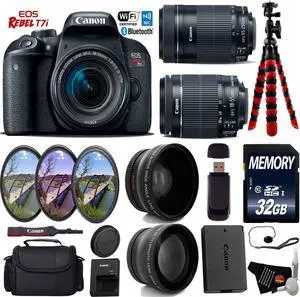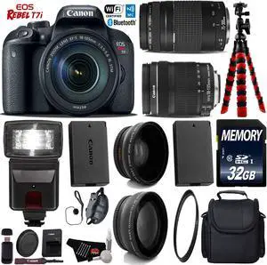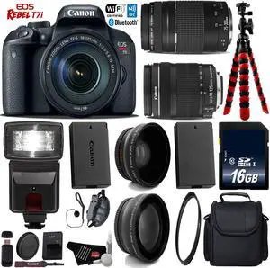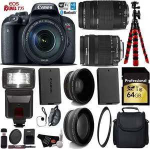 Canon EOS Rebel T7i DSLR Camera with 18-135mm IS STM Lens & 75-300mm III Lens + Tripod + Flash + UV FLD CPL Filter Kit + Wide Angle & Telephoto Lens + Camera Case + Card Reader - Intl Model
