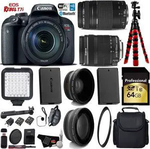 Canon EOS Rebel T7i DSLR Camera with 18-135mm IS STM Lens & 75-300mm III Lens + LED + UV FLD CPL Filter Kit + Wide Angle & Telephoto Lens + Camera Case + Tripod + Card Reader - Intl Model