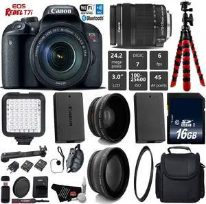Canon EOS Rebel T7i DSLR Camera with 18-135mm IS STM Lens + Tripod + LED + UV FLD CPL Filter Kit + Wide Angle & Telephoto Lens + Camera Case + Card Reader - Intl Model