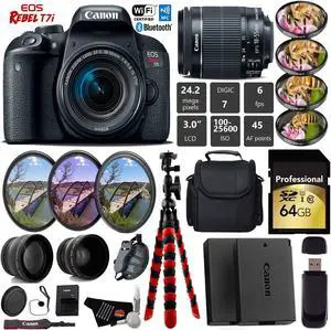 Canon EOS Rebel T7i DSLR Camera with 18-55mm IS STM Lens + Tripod + UV FLD CPL Filter Kit + 4 PC Macro Kit + Wide Angle & Telephoto Lens + Camera Case + Card Reader - Intl Model