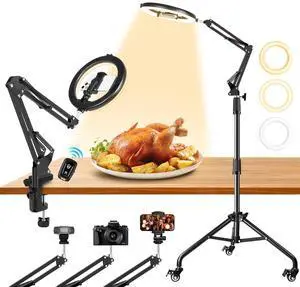 Ring Light Overhead Phone Mount with Casters, Dual-Purpose Floor/Desk Light Tripod for iPhone, Selfie Phone Tripod for Video Recording/Live Streaming/Cooking