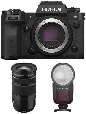 Fujifilm X-H2S Mirrorless Camera with XF 18-120mm f/4 LM PZ WR Lens, Black, Bundle with Zoom Li-on X R2 TTL On-Camera Round Flash Speedlight