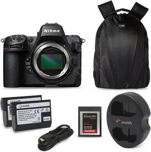 Nikon Z8 (45.7MP) FX Format Mirrorless Digital Camera Body with Waith Power Battery (2-Pack) + Dual Charger, 64GB Type-B Memory Card & Waith Backpack Bundle