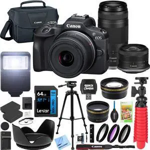 Canon EOS R50 V Mirrorless Camera w/ RF S14-30mm F4-6.3 Lens Kit + 64GB Memory Bundle