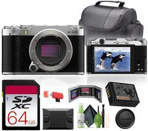 Fujifilm X-M5 Mirrorless Digital Camera Body (Silver) + 64GB Memory Card + More