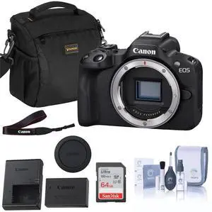 Canon EOS M50 Mirrorless Digital Camera with 15-45mm Lens (Black) Basic Bundle w/ 64GB Memory Card - Intl Model