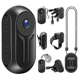 1080P Sports Action Camera with 64GB Card, Mini Body Camera Wearable Action Body Cam, Portable Recorder with Magnetic Back Clip