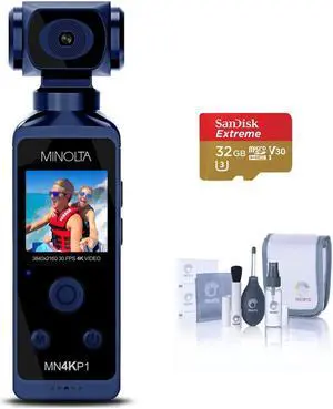 Minolta MN4KP1 4K Ultra HD Wi-Fi Enabled Pocket Camcorder, Blue Bundle with 32GB microSD Card, Cleaning Kit
