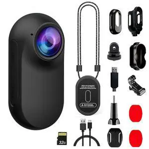 64GB FHD 1080P Mini Body Camera, Wearable Action Body Cam, Thumb Size Hands Free Recording Body Worn Camera, Premium Portable Camcorder Mount Anywhere for Pet Walking, Work, Travel (Black)