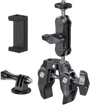 Super Camera Clamp Mount with 1/4" and 3/8" Threads, Dual Ballhead Magic Arm 360° Ball Head Grip, Phone/Action Camera Mount Adapter for Canon Nikon DSLR Camera, GoPro/Insta360/INSTAX/DJI