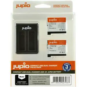 Jupio Value Pack with 2x AHDBT-401 3.8V 1160mAh Lithium-Ion Battery and Compact USB Dual Charger for GoPro HERO4
