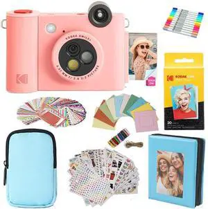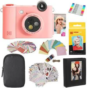 KODAK Smile+ 2-in-1 Digital Instant Print Camera & Photo Printer Gift Bundle + Case + Zink 2x3" Sticky Back Photo Paper 20pk + Album + Sticker Sets + Sticker Frames + Hanging Frames + Markers - Pink