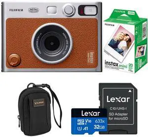 Fujifilm Instax Mini Evo Instant Film Camera, Brown + Essentials Kit